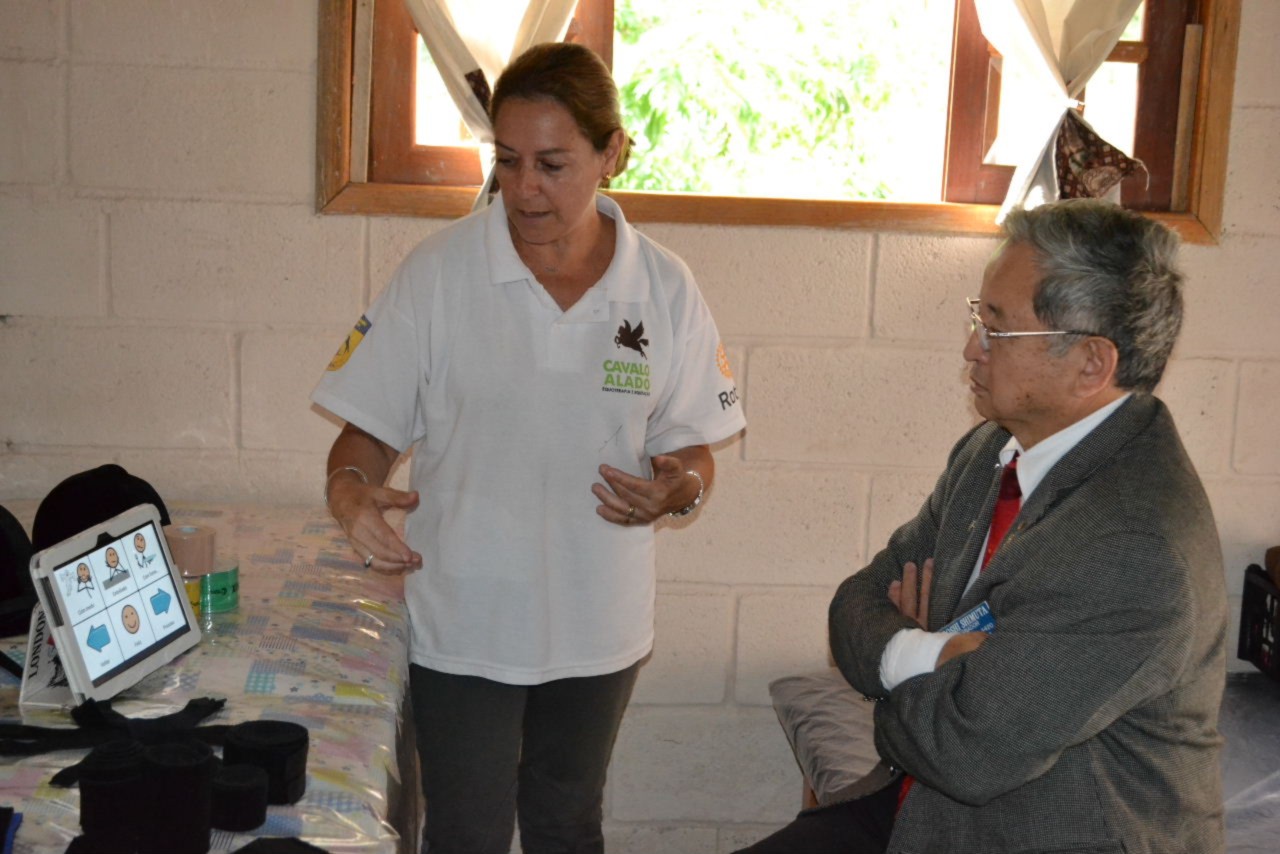 A comitiva de rotarianos recepcionou o governador na sede do clube de onde partiram para cumprir a agenda de atividades, incluindo a visita ao projeto Equoterapia e Equitação Cavalo Alado, onde cavalos são utilizados como meio de alcançar os objetivos terapêuticos. A equoterapia também exige a participação do corpo inteiro, todos os músculos e articulações. O animal estimula as funções cognitivas, motoras e psicossociais.
